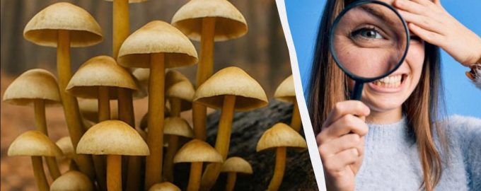 Di depan Anda ada dfoto dengan gambar jamur. Sekilas kedya terlihat sama, tetapi sebenarnya tidak. Jika Anda melihat lebih dekat, Anda bisa melihat perbedaannya. Tugas Anda adalah menemukan masing-masing.