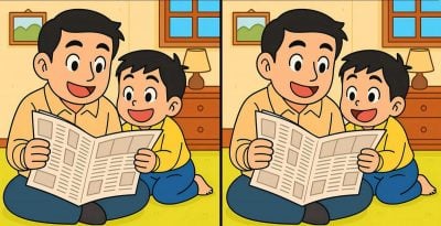 Jadi, siap untuk tantangan berikutnya? Lihatlah dgambar ayah dan anak yang sedang membaca koran. Sekilas kedgambar ini mungkin terlihat sama, tetapi ada 3 perbedaan yang tersembunyi pada gambar tersebut dan tugas Anda adalah menemukannya sesegera mungkin. Apakah Anda bisa menemukan semya hanya dalam waktu 45 detik? Cobalah untuk memecahkan teka-teki ini dan lihatlah seberapa tajam kemamp Anda!